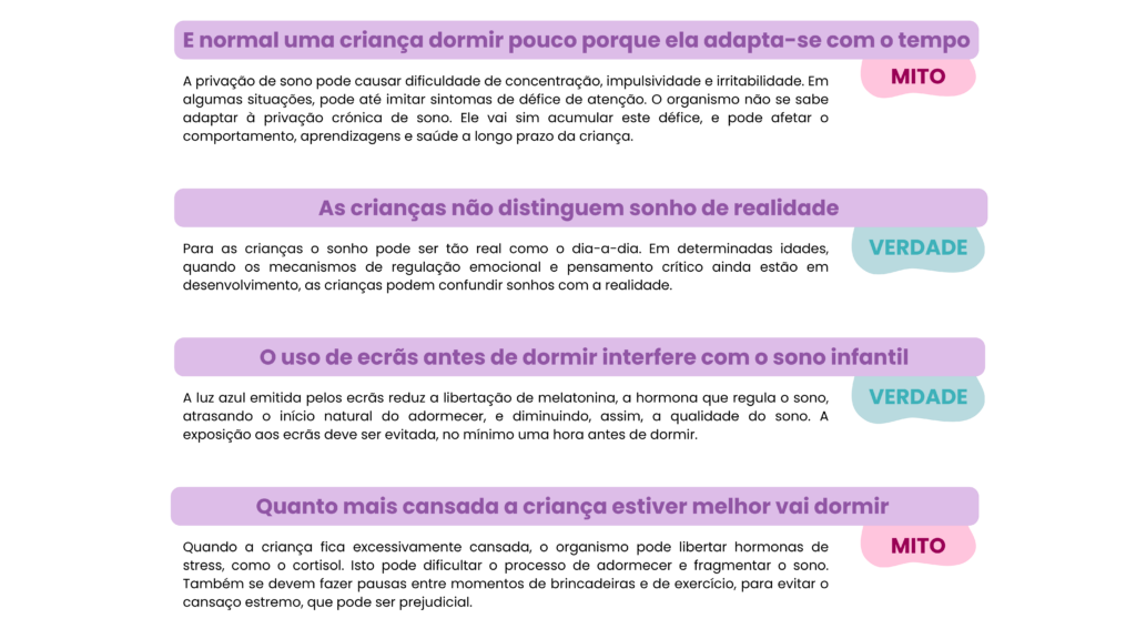 World Health Organization (2019). Guidelines on physical activity, sedentary behaviour and sleep for children under 5 years of age. Geneva: WHO. Paruthi, S., et al. (2016). Recommended Amount of Sleep for Pediatric Populations. Journal of Clinical Sleep Medicine. Sociedade Portuguesa de Pediatria: https://criancaefamilia.spp.pt